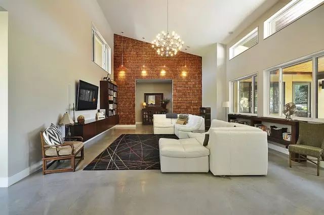 有些人喜欢灰色或白色的风格,而在一个现代装饰的客厅中,加入一面红砖墙时,马上能让这个原本平淡的房间活跃起来,成为使用者或者观赏者的聚焦点。