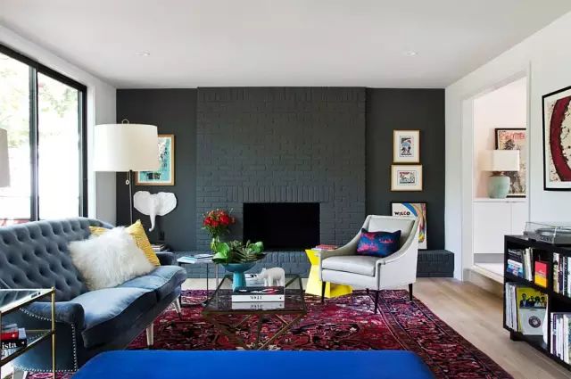 暗色调的砖墙最容易吸引注意力,尤其是在和周边的软装不同色调的时候。